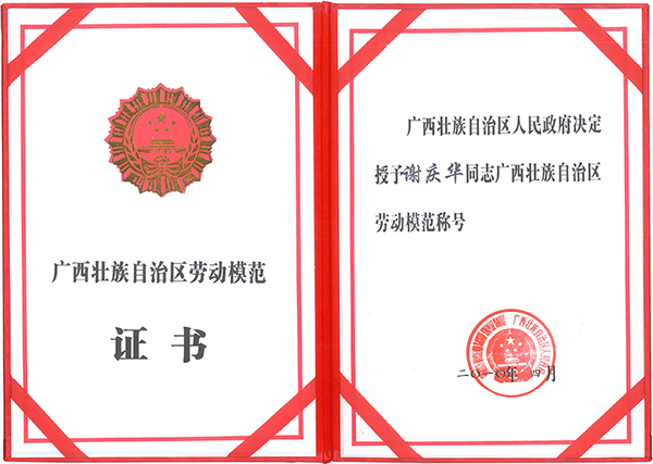 謝慶華總經(jīng)理榮獲“廣西壯族自治區(qū)勞動(dòng)模范”稱(chēng)號(hào)