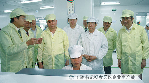 聶玉春副總經(jīng)理首先向王樂(lè)泉副書(shū)記轉(zhuǎn)達(dá)了熊群力董事長(zhǎng)等集團(tuán)領(lǐng)導(dǎo)的問(wèn)候,歡迎王副書(shū)記蒞臨中電旗下企業(yè)視察指導(dǎo)。在園區(qū)展廳,聶總向各位領(lǐng)導(dǎo)和嘉賓介紹了中國(guó)電子集團(tuán)為了響應(yīng)中央西部大開(kāi)發(fā)的號(hào)召,落實(shí)胡錦濤總書(shū)記關(guān)于“廣西沿海發(fā)展應(yīng)形成新的一極”的重要指示精神,體現(xiàn)中央企業(yè)的政治責(zé)任與社會(huì)責(zé)任,與廣西壯族自治區(qū)人民政府合作建設(shè)中國(guó)電子北海產(chǎn)業(yè)園,充分發(fā)揮雙方的優(yōu)勢(shì),抓住北部灣經(jīng)濟(jì)區(qū)開(kāi)發(fā)、開(kāi)放和東盟自由貿(mào)易區(qū)建立的機(jī)遇,打造西部沿海地區(qū)電子信息產(chǎn)業(yè)生產(chǎn)制造基地及信息、服務(wù)、貿(mào)易中心的戰(zhàn)略舉措,介紹了北海產(chǎn)業(yè)園的建設(shè)發(fā)展和產(chǎn)業(yè)集聚情況,并陪同參觀(guān)了相關(guān)企業(yè)的展品及景光電子生產(chǎn)車(chē)間。