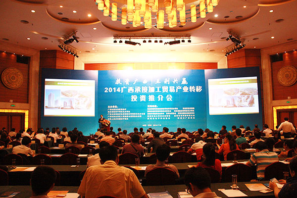 2014年7月16日,由自治區(qū)商務(wù)廳主辦的2014廣西承接加工貿(mào)易產(chǎn)業(yè)轉(zhuǎn)移投資推介會在深圳舉行。自治區(qū)政府副秘書長魏然,深圳市經(jīng)濟貿(mào)易和信息化委員會副主任高林等領(lǐng)導(dǎo)和嘉賓為會議致辭。自治區(qū)商務(wù)廳、北部灣辦分別從不同角度對廣西承接加工貿(mào)易產(chǎn)業(yè)轉(zhuǎn)移投資環(huán)境進行了推介。北海、欽州、梧州、南寧四個國家級加工貿(mào)易梯度轉(zhuǎn)移重點承接地,欽州保稅港區(qū)、憑祥綜合保稅區(qū)、北海出口加工區(qū)、中馬欽州產(chǎn)業(yè)園、東興國家重點開發(fā)開放試驗區(qū)、南寧高新技術(shù)產(chǎn)業(yè)開發(fā)區(qū)、中國電子北海產(chǎn)業(yè)園、梧州市粵桂合作特別實驗區(qū)八個重點園區(qū),分別就各自的產(chǎn)業(yè)布局、投資環(huán)境、政策優(yōu)勢進行了推介。香港特區(qū)政府駐粵辦、香港貿(mào)易發(fā)展局、深圳外商投資企業(yè)協(xié)會、深圳臺商協(xié)會、深圳市加工貿(mào)易企業(yè)協(xié)會、深圳市企業(yè)聯(lián)合會、深圳市電子行業(yè)協(xié)會及廣東各類加工貿(mào)易企業(yè)約400人出席了推介會。