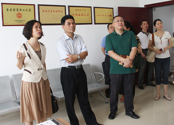 2016年5月19日,由自治區(qū)總工會(huì)副主席元德新率領(lǐng)的自治區(qū)總工會(huì)調(diào)研組在北海市總工會(huì)書(shū)記柳金紅的陪同下,到中國(guó)電子北海產(chǎn)業(yè)園考察“五心”職工之家建設(shè)情況。