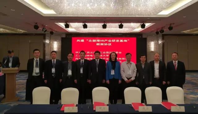 2017年1月8日,在深圳召開的“廣西電子信息產(chǎn)業(yè)桂電校友招商引資懇談會”上,在自治區(qū)工信委徐莉青副主任、北海市委常委、副市長曾子祥,桂林電子科技大學(xué)校長古天龍等領(lǐng)導(dǎo)見證下,桂林電子科技大學(xué)、北海工業(yè)園區(qū)管委會、中國電子北海產(chǎn)業(yè)園公司與北京幻鯨數(shù)字科技有限公司簽署合作協(xié)議,建設(shè)北部灣VR產(chǎn)業(yè)研發(fā)基地,標志著中國電子北部灣信息港軟件研發(fā)版塊進入新的發(fā)展階段。