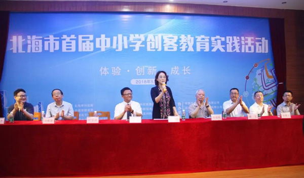 北海市科技局、北海市教育局、中國電子學(xué)會、中國電子北海產(chǎn)業(yè)園主辦的2018年北海市科技活動周暨首屆中小學(xué)創(chuàng)客教育實(shí)踐活動于5月21日開幕,北海市副市長黃江出席開幕式并宣布教育實(shí)踐活動啟動。