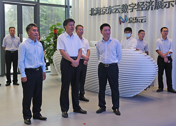 2020年6月11日下午,北海市委書記王乃學(xué)同欽州市委書記許永錁所率領(lǐng)的欽州市黨政代表團到中國電子北部灣信息港調(diào)研,參觀了北海京東云數(shù)字經(jīng)濟展示中心、京東網(wǎng)紅直播基地,聽取企業(yè)負責人介紹生產(chǎn)經(jīng)營等方面的情況。